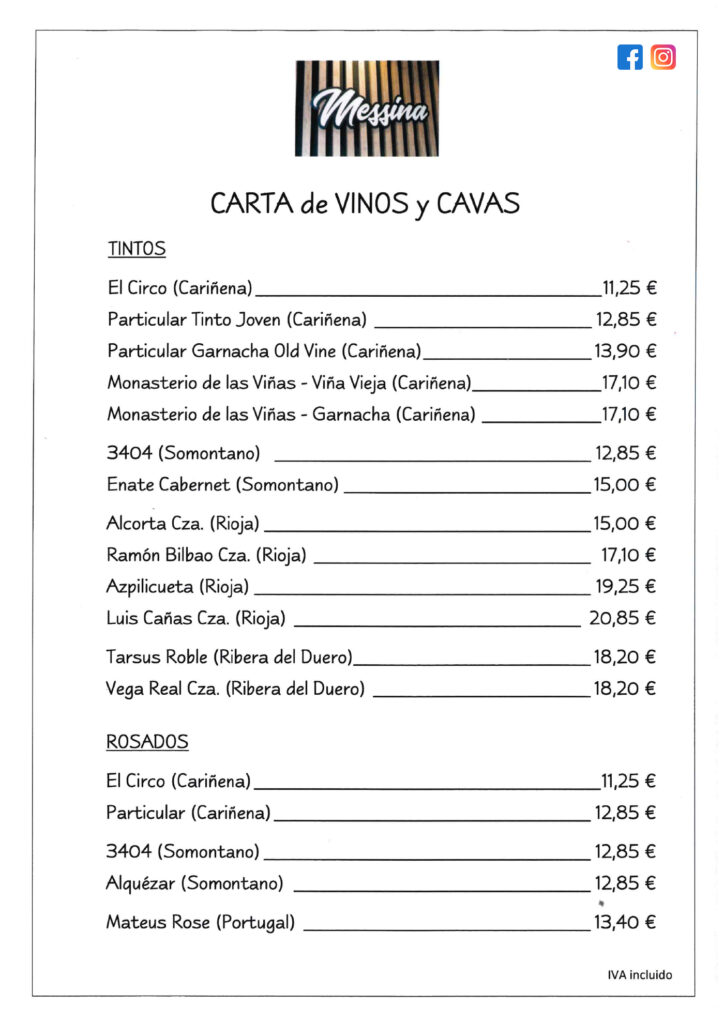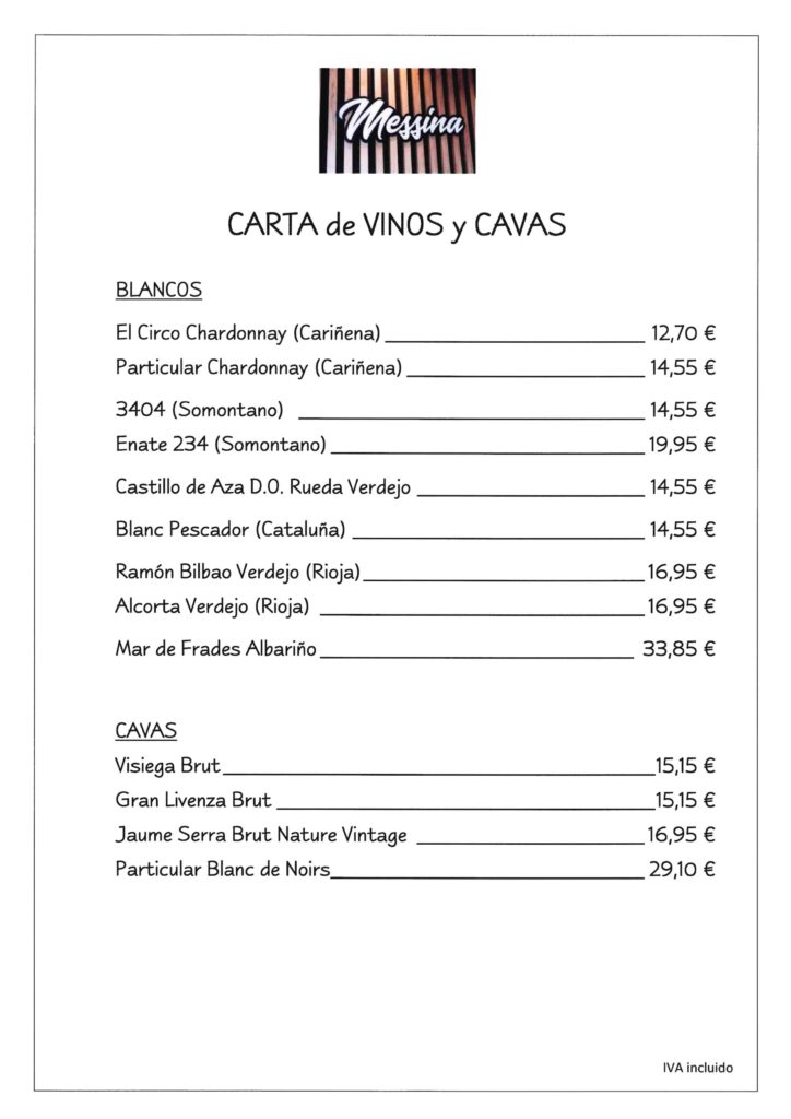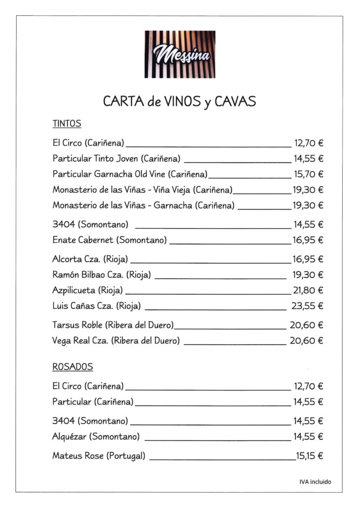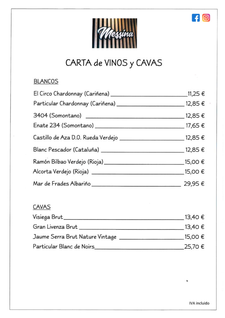 Carta vinos y cava